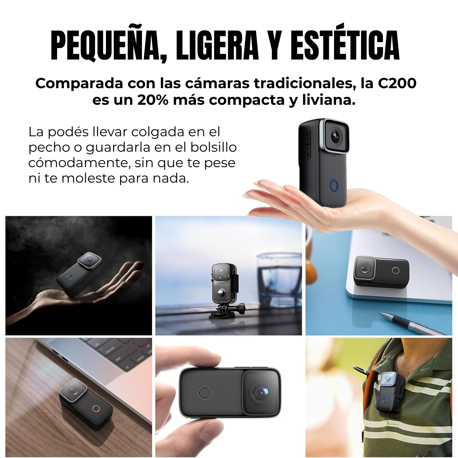Gracias a su diseño compacto y accesorios incluidos, puedes colocar la pro cam en tu casco, pecho o bicicleta en segundos.